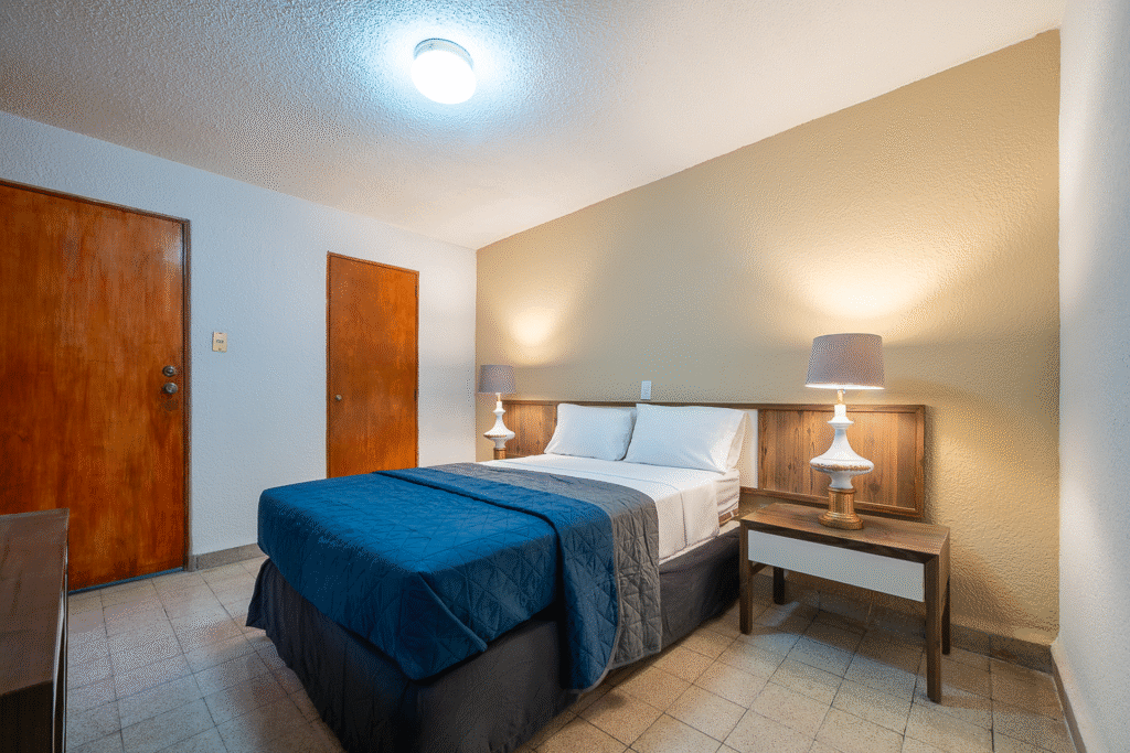 Una opción práctica para descansar. Esta habitación cuenta con dos camas matrimoniales, clóset, caja de seguridad, WiFi, SMART TV, escritorio y baño privado. Ideal para quienes viajan solos y buscan lo básico para una buena noche de descanso.